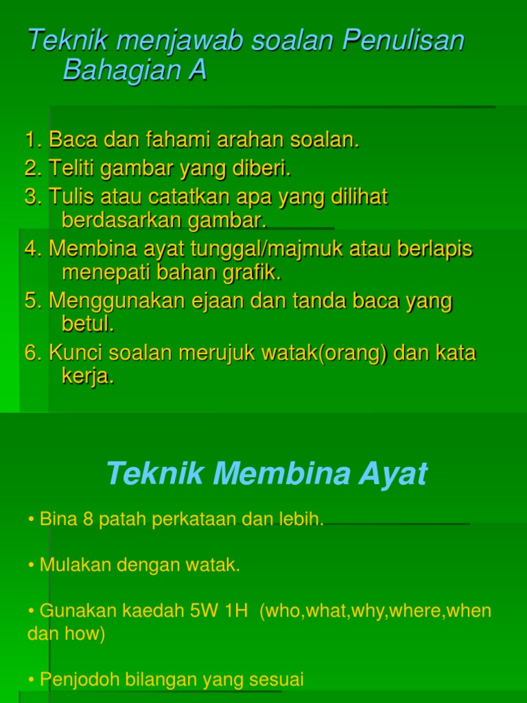 Perhatikan bahan grafik atau gambar dengan. Teknik Menjawab Bahasa Melayu Penulisan UPSR. Ketiga-tiga bahagian ini mesti dijawab.